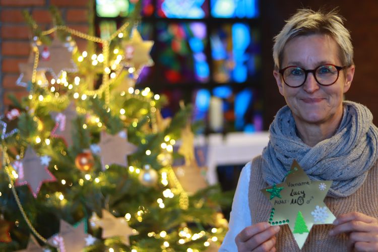 Kindern von Suchterkrankten sowie von Familien unserer Schwangerenberatung möchte die Caritas Ruhr-Mitte in Schwelm mit einer Weihnachtswunschbaum-Aktion wieder eine Freude machen. „Ab Sonntag, 30. November, steht der Caritas-Wunschbaum in der Werktagskapelle der katholischen Kirche St. Marien an der Bahnhofstraße. Diese ist durchgehend geöffnet und die Wunschsterne warten nur darauf, von Spender*innen abgeholt zu werden“, erklärt Anke Duarte, Leiterin des Caritas-Suchthilfezentrums, beim Schmücken des Baums.